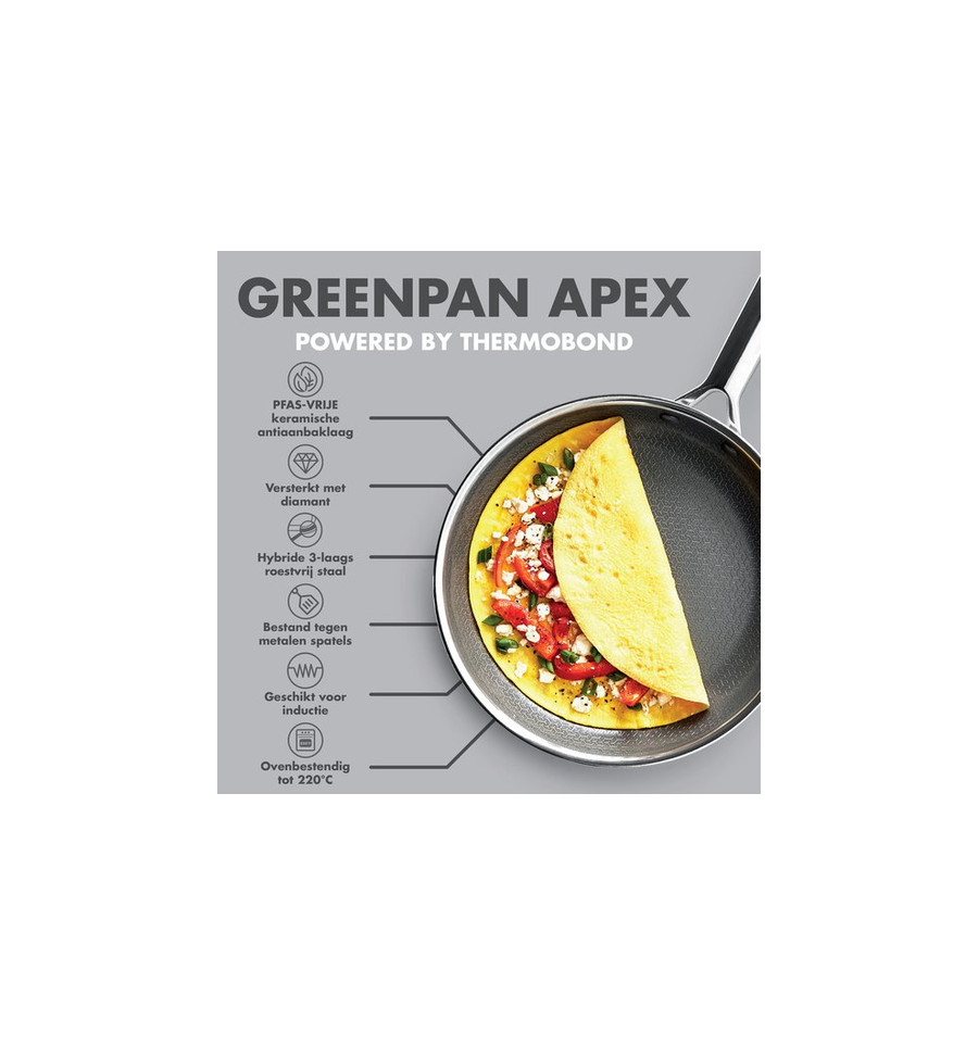 Apex Thermobond Hybrid Greenpan Braadpan 24 cm 3-laags roestvrij staal voor perfecte resultaten