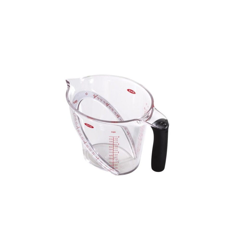 OXO heeft met de Good Grips gebogen maatbeker een ware revolutie teweeggebracht. Dankzij het gepatenteerde gebogen oppervlak kunt u de maataanduiding lezen door simpelweg bovenin de beker te kijken. U hoeft daardoor nooit meer constant de hoeveelheid vloeistof te controleren. Het handvat is zacht en heeft een anti-slip grip. Met de fel gekleurde maataanduidingen in ounce en millimeter is elk recept onder te brengen. Verkrijgbaar in versies met 1, 2, 4 en 8 cup beker(s). De maatbekers zijn vaatwasmachinebestendig en BPA-vrij.