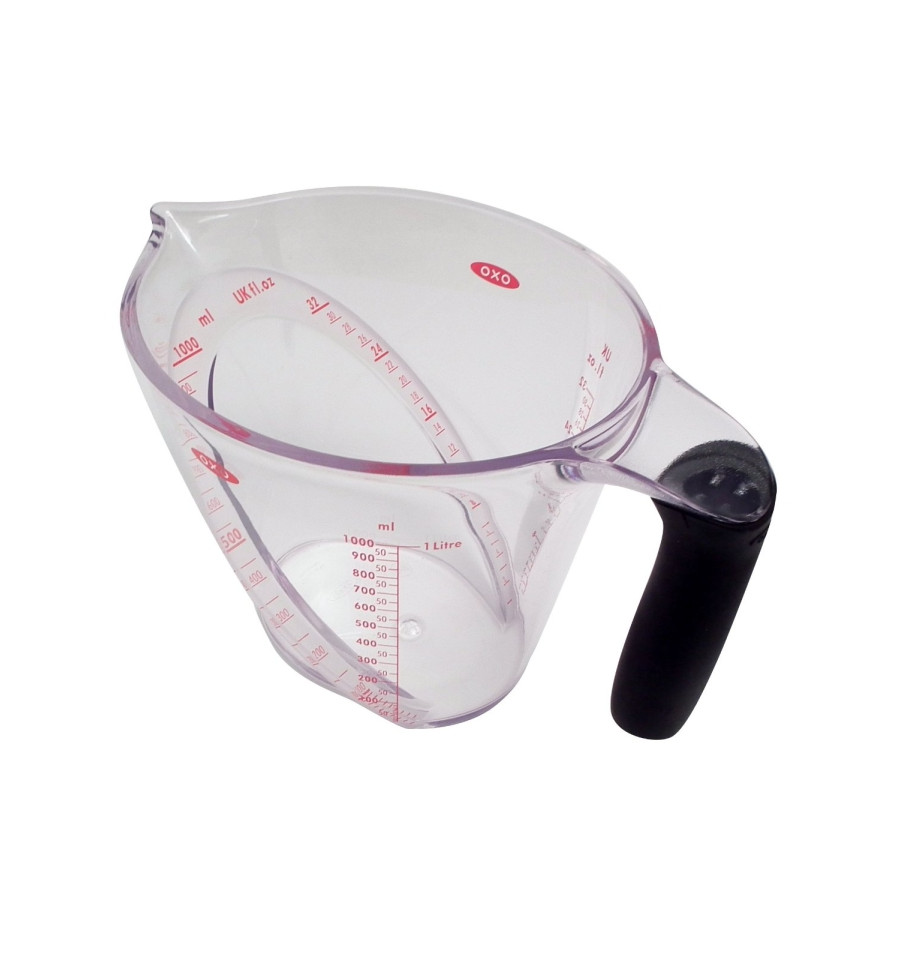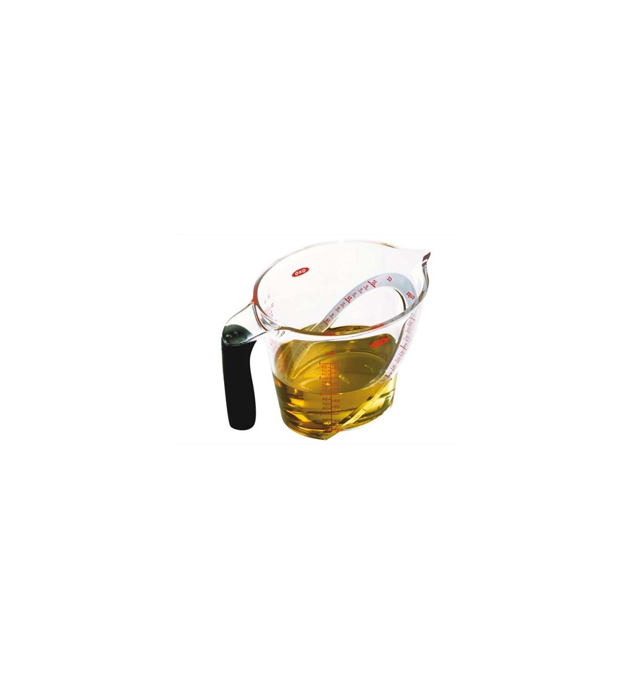 OXO heeft met de Good Grips gebogen maatbeker een ware revolutie teweeggebracht. Dankzij het gepatenteerde gebogen oppervlak kunt u de maataanduiding lezen door simpelweg bovenin de beker te kijken. U hoeft daardoor nooit meer constant de hoeveelheid vloeistof te controleren. Het handvat is zacht en heeft een anti-slip grip. Met de fel gekleurde maataanduidingen in ounce en millimeter is elk recept onder te brengen. Verkrijgbaar in versies met 1, 2, 4 en 8 cup beker(s). De maatbekers zijn vaatwasmachinebestendig en BPA-vrij.