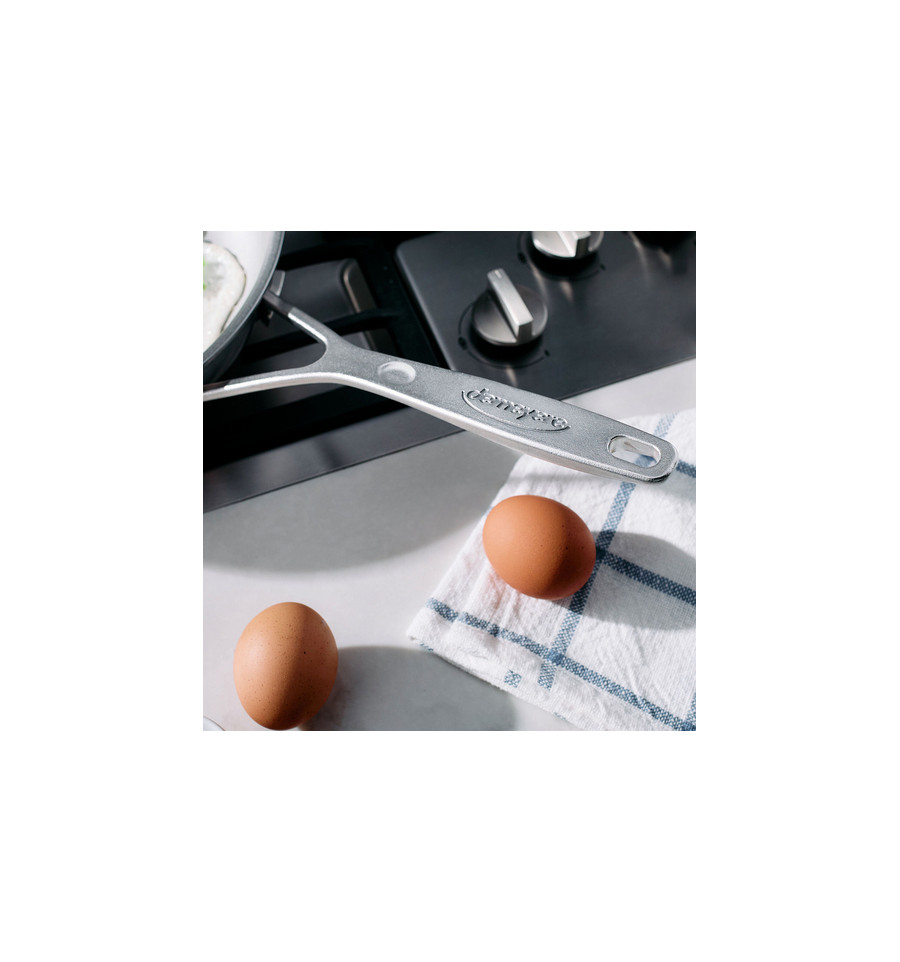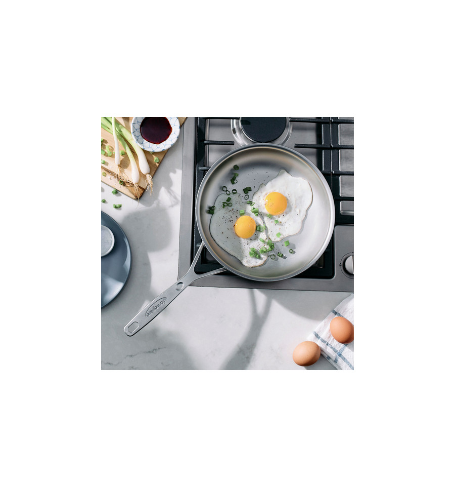 De innovatieve NanoTouch technologie creëert een roestvrijstalen bakoppervlak met micro-oneffenheden die vetstoffen optimaal over de pan verdelen. Hierdoor bak je moeiteloos magere kip, delicate vis of krokante aardappeltjes, zelfs met een minimale hoeveelheid vet. Het oppervlak is bijzonder krasvast, waardoor metalen spatels of lepels geen probleem vormen.
