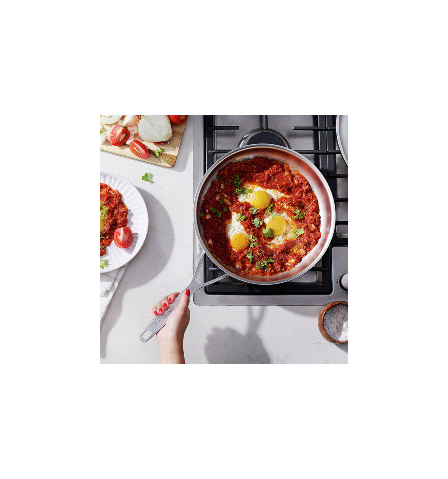 De pan kan worden gebruikt op alle warmtebronnen, inclusief inductie, en is ook ovenbestendig.