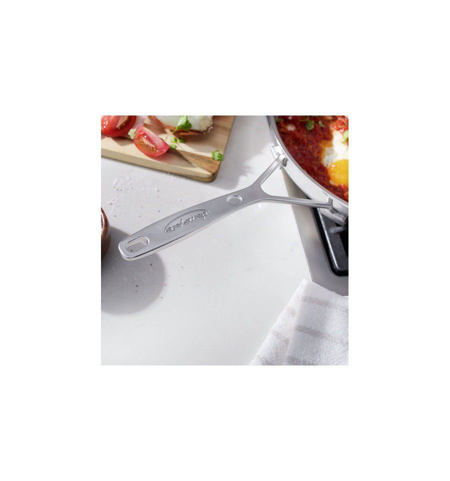 De innovatieve NanoTouch technologie creëert een roestvrijstalen bakoppervlak met micro-oneffenheden die vetstoffen optimaal over de pan verdelen. Hierdoor bak je moeiteloos magere kip, delicate vis of krokante aardappeltjes, zelfs met een minimale hoeveelheid vet. Het oppervlak is bijzonder krasvast, waardoor metalen spatels of lepels geen probleem vormen.