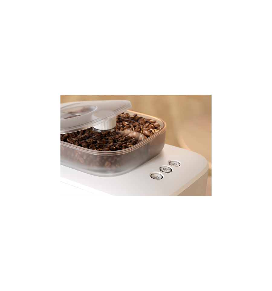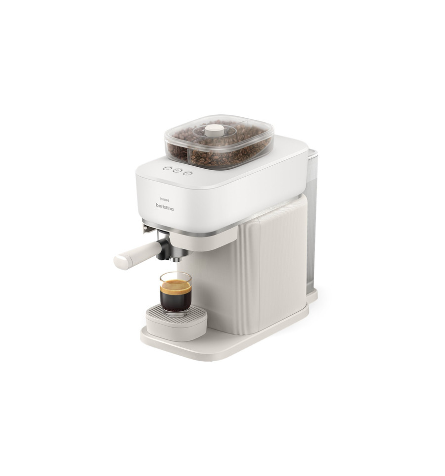 De barista die op je aanrecht woont. Giet je favoriete bonen erin; swipe de hendel en geniet van een ongelofelijke espresso. Hij maalt de bonen automatisch voor een heerlijk; intens aroma. Stampt de portafilter perfect aan. En brouwt met 16 bar drukpomp; zodat je koffie smaakt net zoals een barista hem heeft gemaakt. Zo eenvoudig is het. Baristina zorgt voor de espresso; zodat jij kan genieten van een heerlijk; vers gebrouwen koffie.