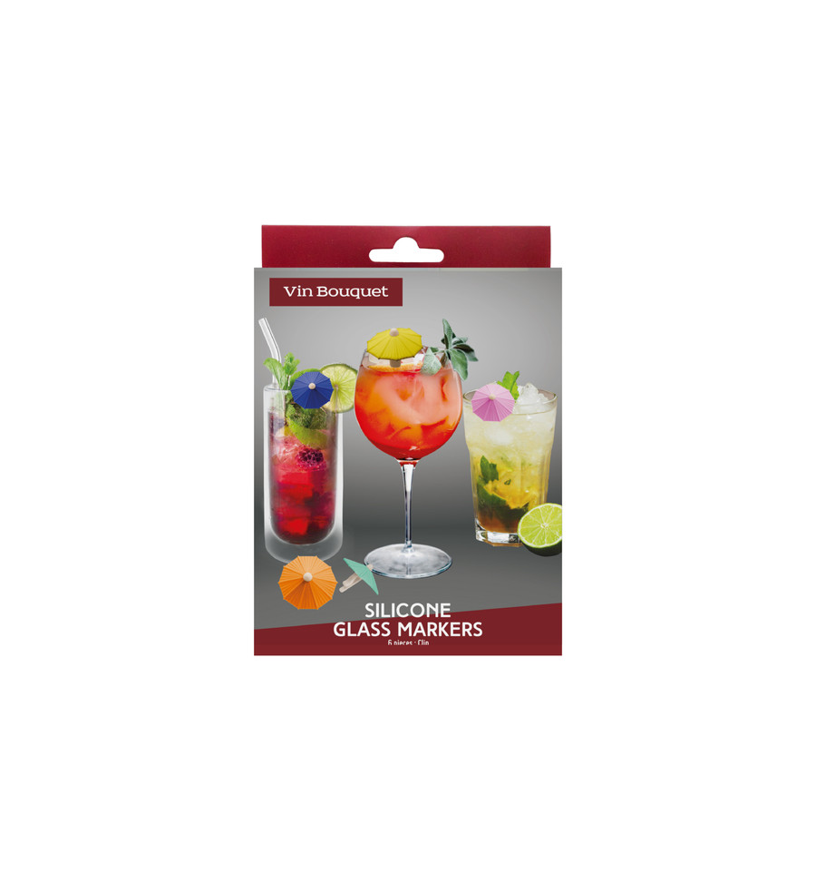 Nieuw SET 6 GLASMARKEERDERS PARASOLS Vergroot