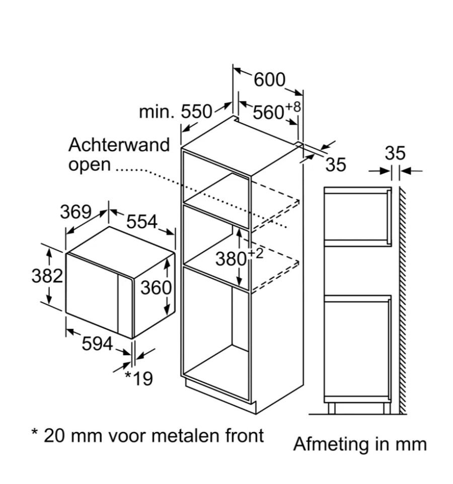 Inbouwafmetingen (HxBxD): 380-382 x 560-568 x 550 mm