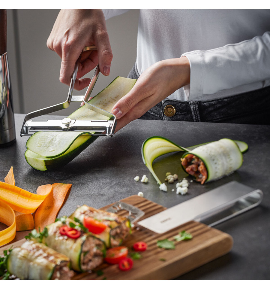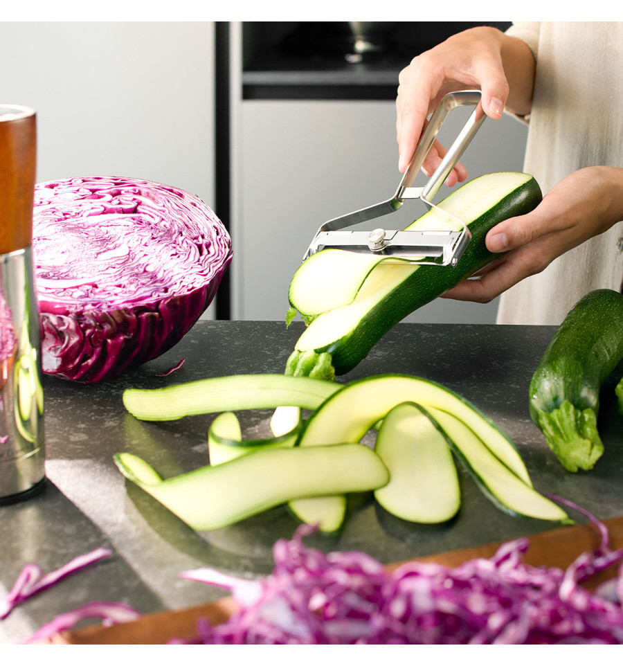 Met de Y-PRO groentesnijder snijdt u in een handomdraai flinterdunne plakjes groente en kaas – perfect voor tal van gerechten en creatieve presentaties.
