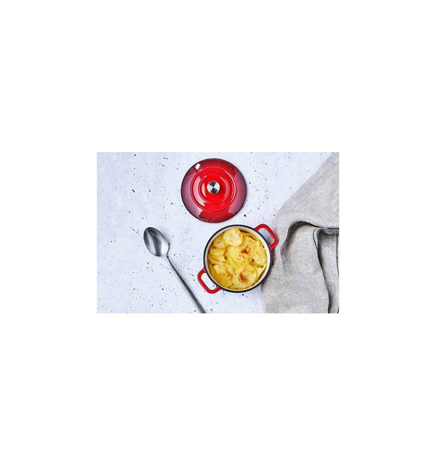 MINI STOOFPOTJE 12CM ROOD GIETIJZER COCOTTE