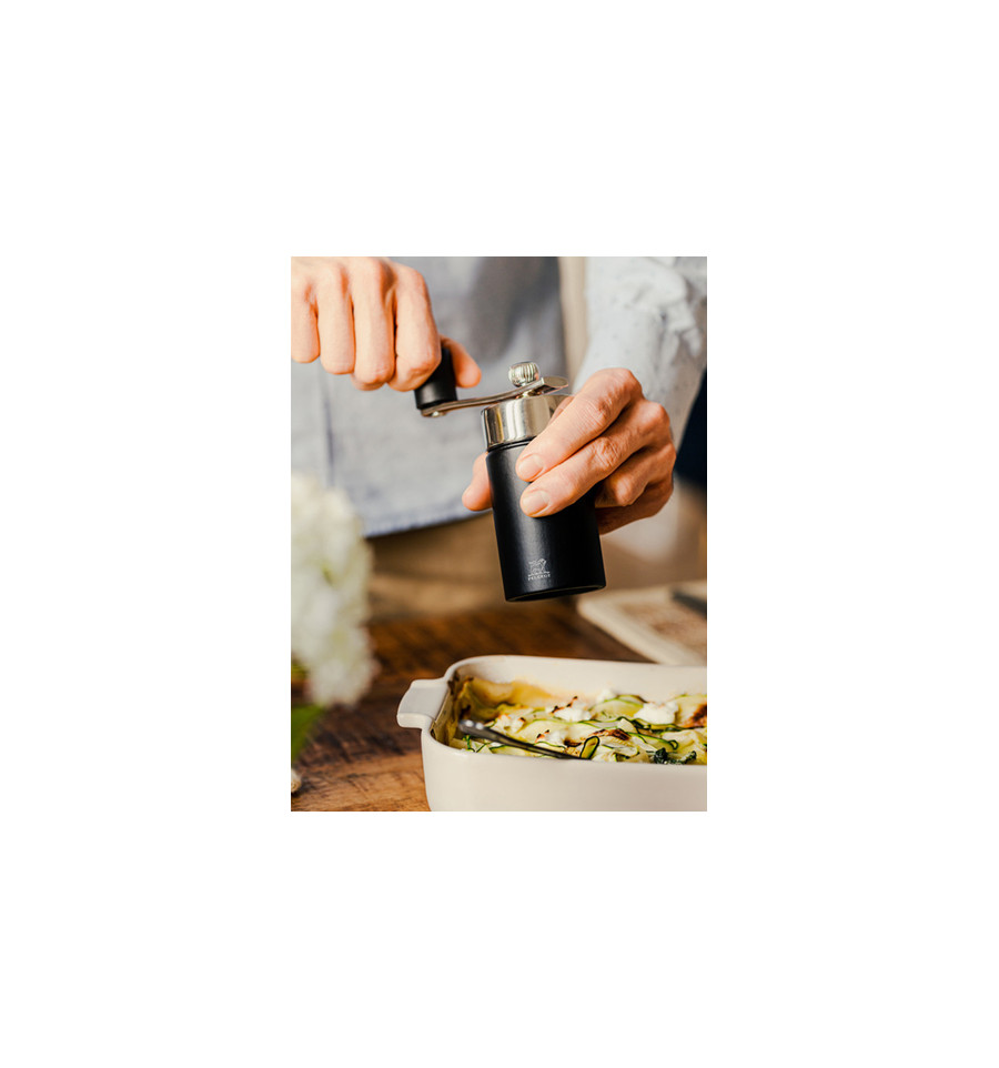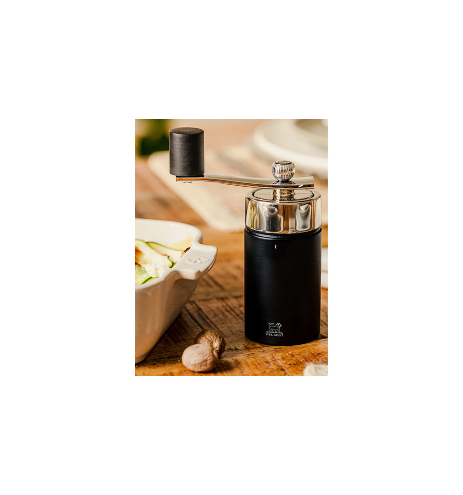 Dit ingenieuze maalwerk zit verborgen in het hart van een compacte molen, die geweldig charmant is dankzij zijn design dat de glans van metaal combineert met de elegantie van de matzwarte kleur.
