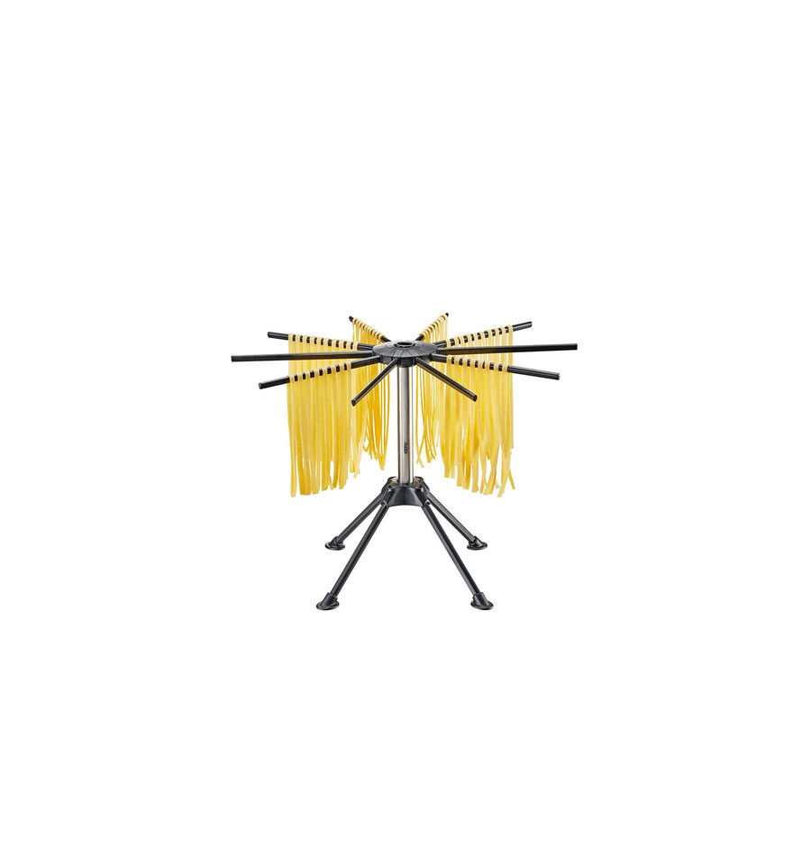 Dit opvouwbare, ruimtebesparende pastadroogrek is perfect voor het drogen van zelfgemaakte pasta! Rechtstreeks uit de pastamachine op het droogrek.