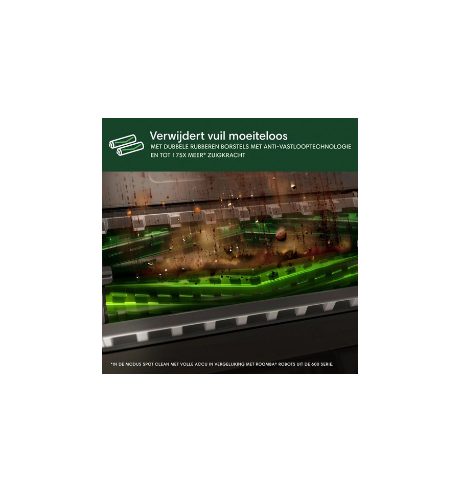 Herkent natte en droge vuile plekken en herhaalt schoonmaakrondes voor een grondigere schoonmaak.