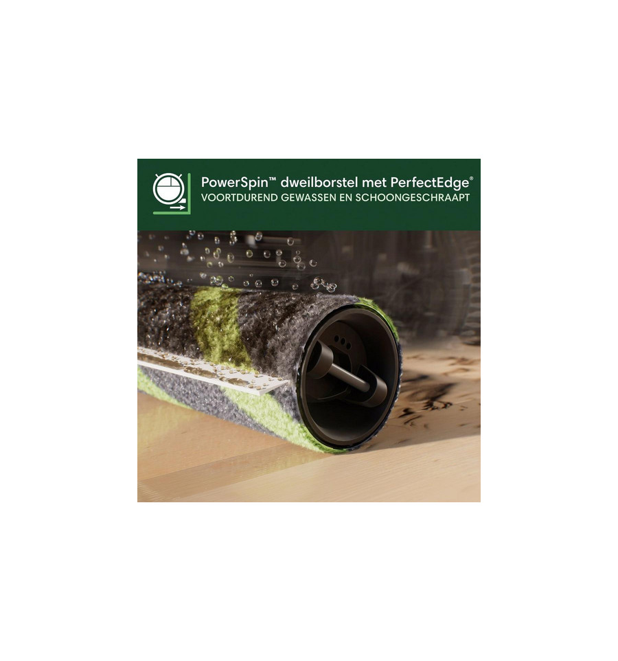 De PowerSpin™ dweilborstel reinigt zichzelf continu, kan worden uitgeschoven voor nauwkeurig schoonmaken van randen en hoeken, en gebruikt een unieke beschermende klep om tapijten droog te houden en vloeren schoon en rommelvrij te houden.