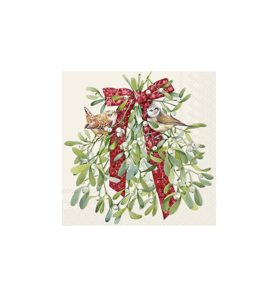20 SERVETTEN 33x33cm BIRD MISTLETOE CREAM