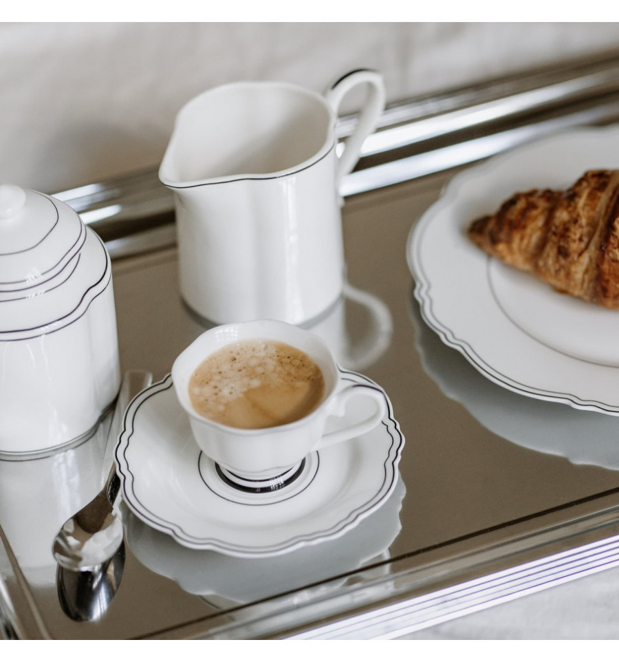 Odette – een verfijnd porseleinen servies dat de tijdloze charme van een Parijse bistro uitstraalt.
