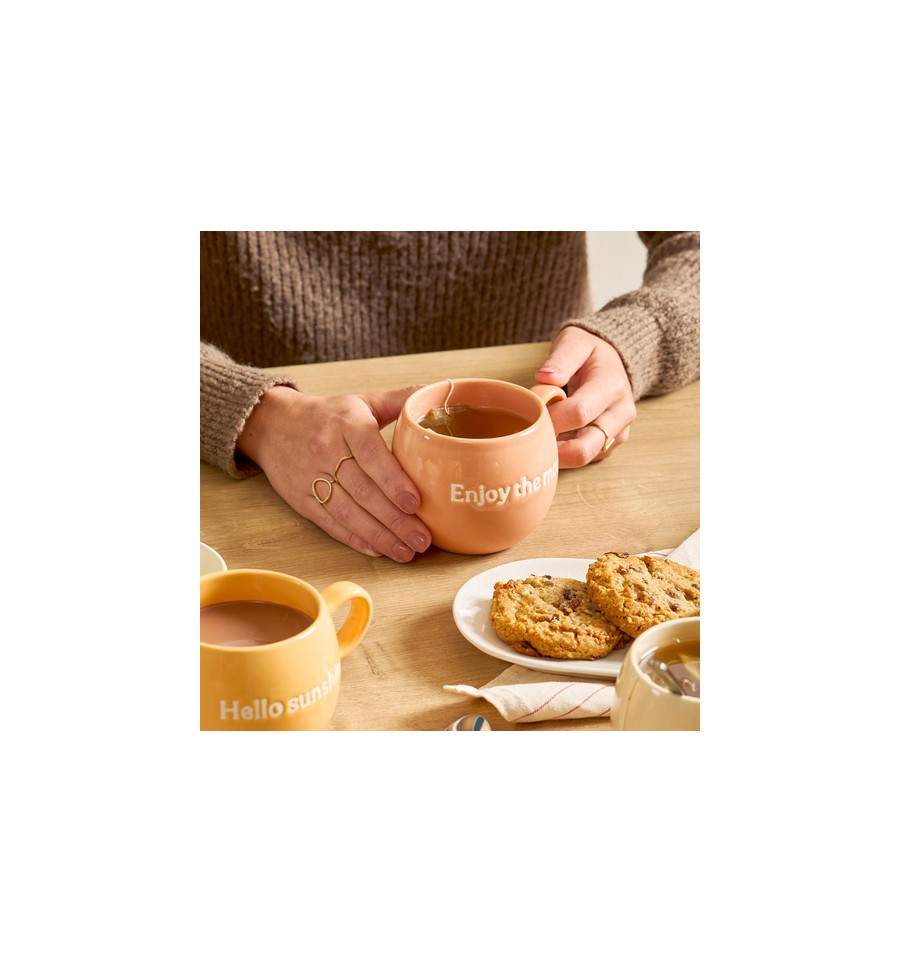 Breng kleur in je ochtend met de 42 cl roze ‘Enjoy The Moment’ mok uit de Muggies-collectie.