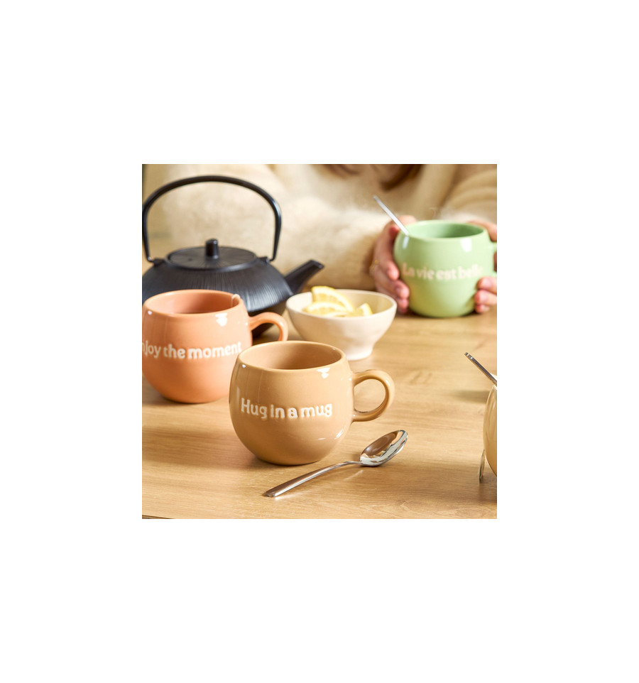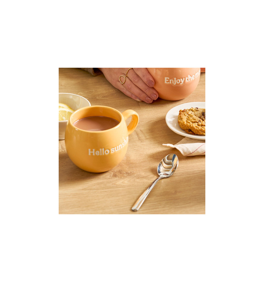 Breng kleur in je ochtend met de 42 cl oranje ‘Hello sunshine’ mok uit de Muggies-collectie.