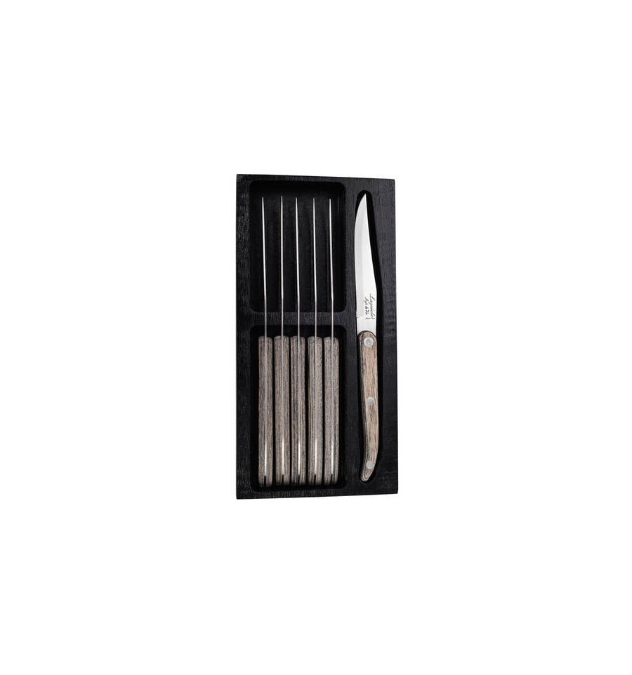 6 STEAKMESSEN GRIJZE PAKKA LAGUIOLE GLAD LEMMET